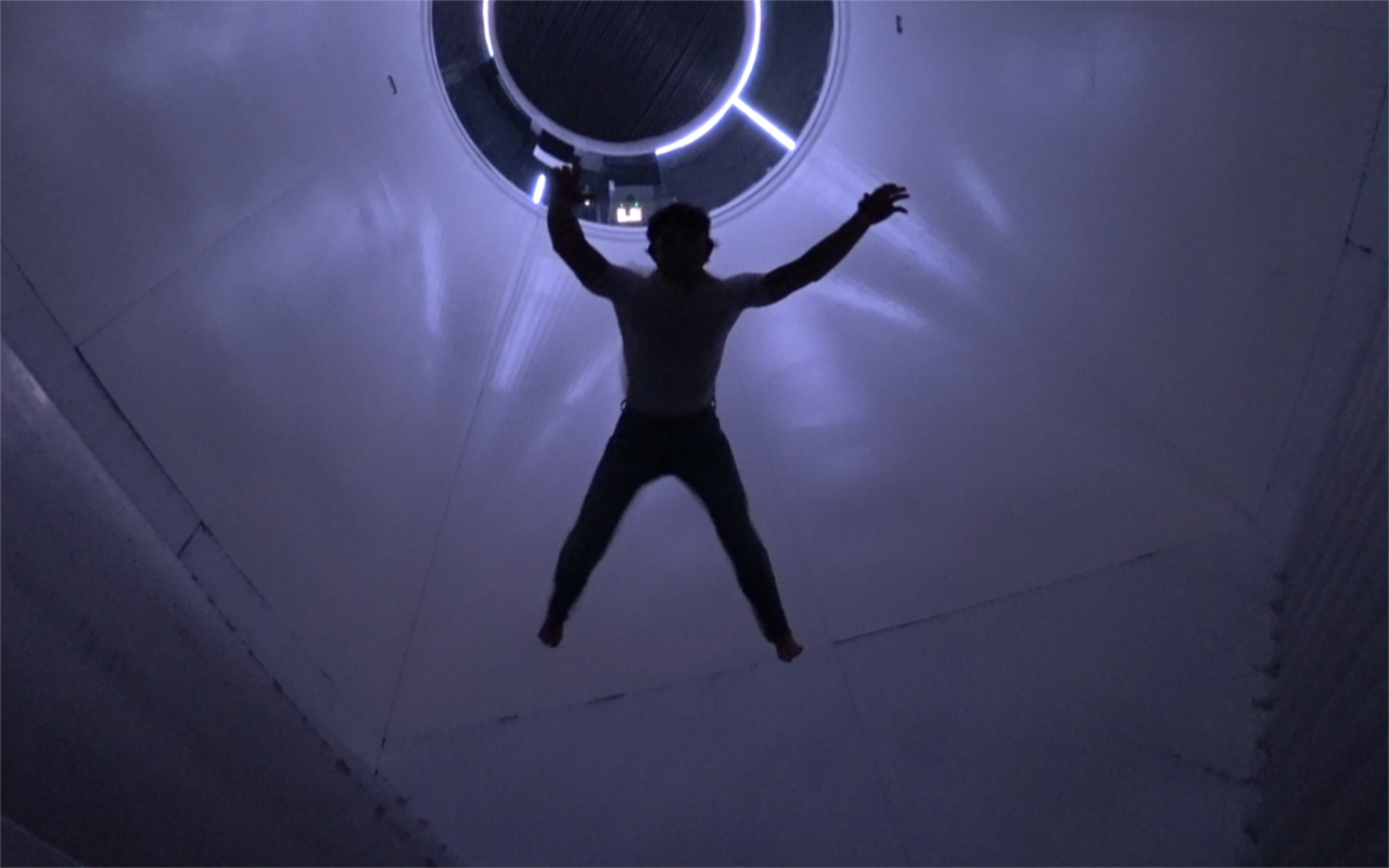 Envol explores the notions of falling and flight, rethinking gravity itself. The sequence begins like a takeoff, a hesitant ascent, before the character tips over and falls backward, landing on their back in the center of a mysterious circle. This circle, enigmatic and almost ritualistic, evokes a boundary between two states: momentum and surrender, serving as a space of tension and transformation.